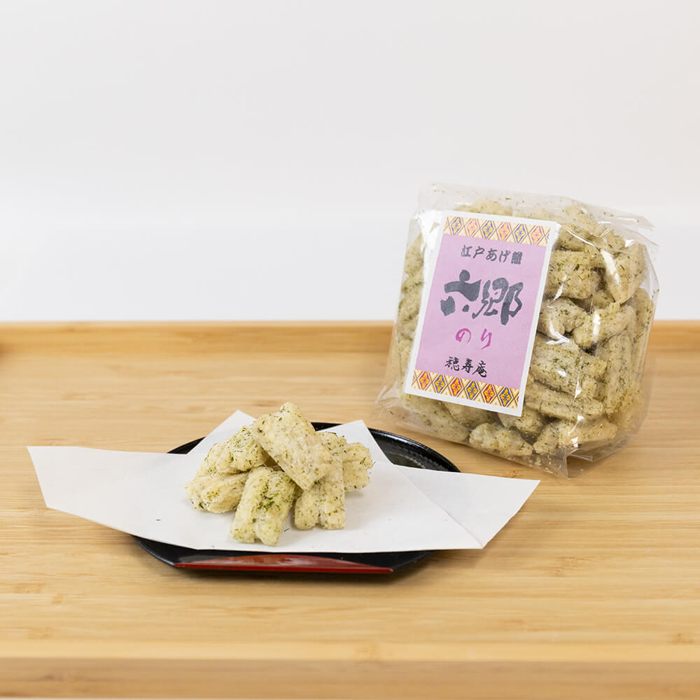 六郷あげ餅150g×15~20個程入る大きな紙袋です。